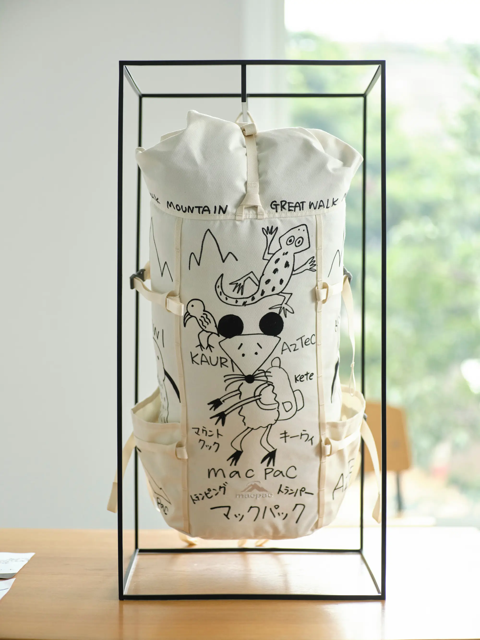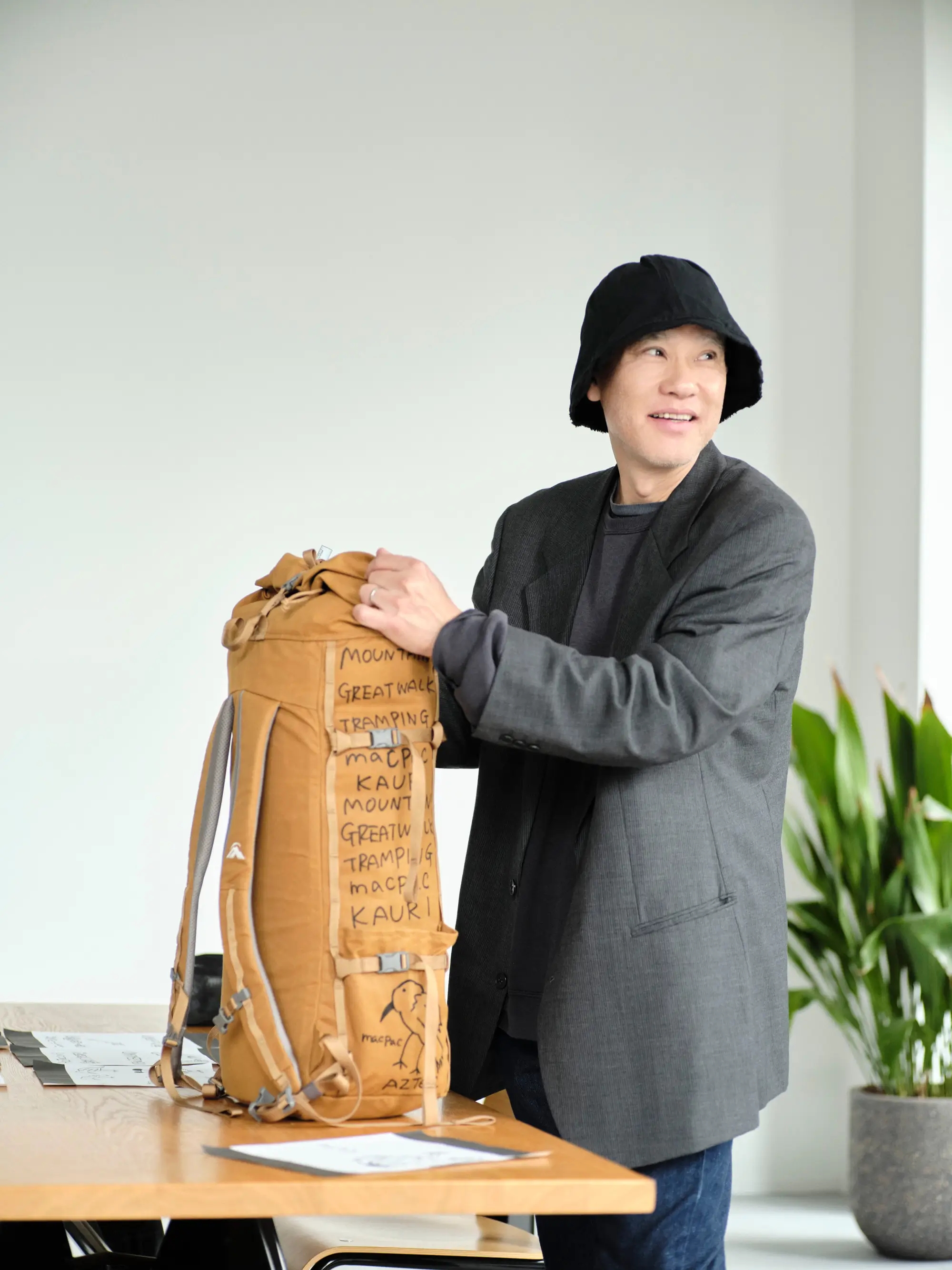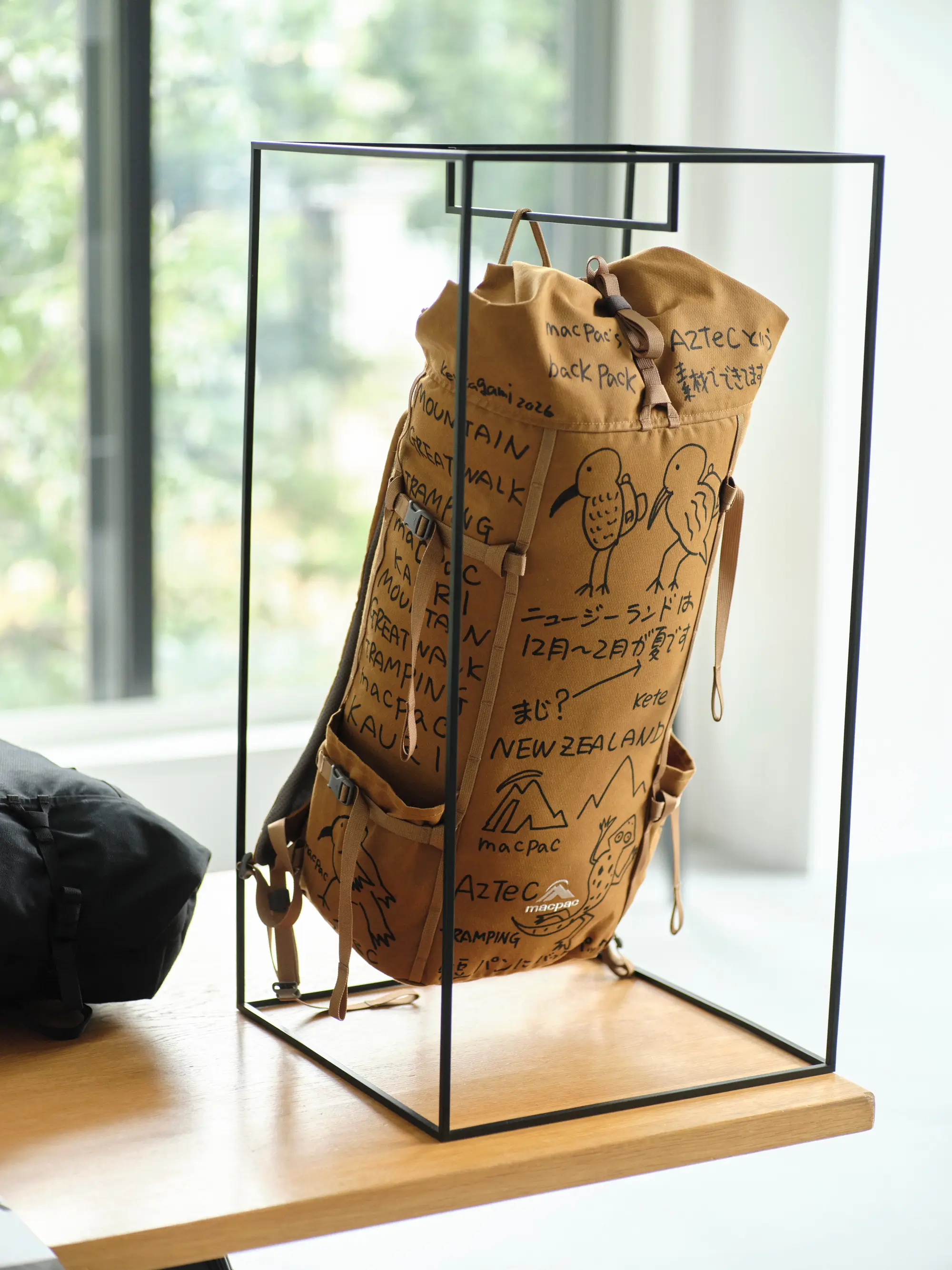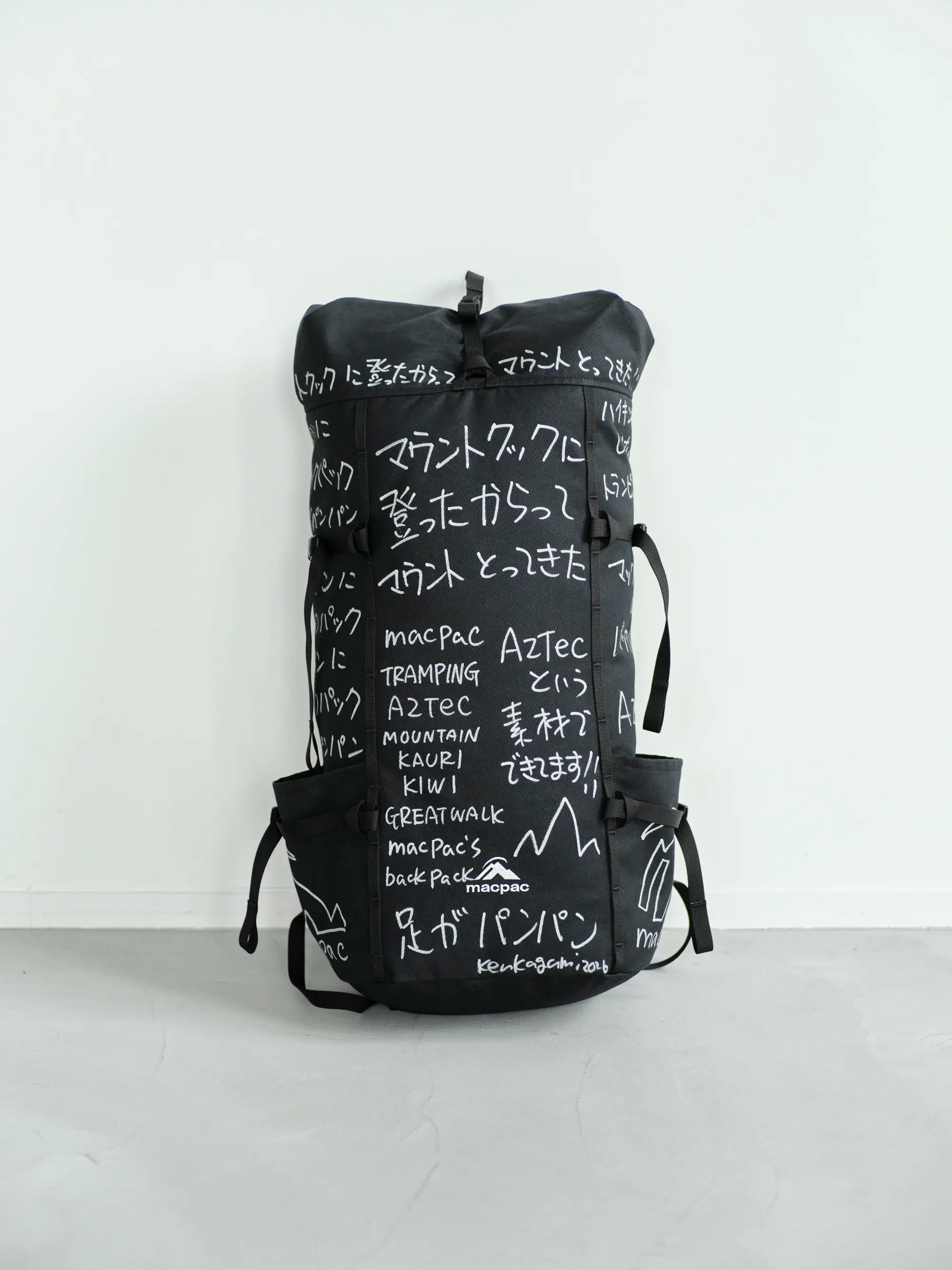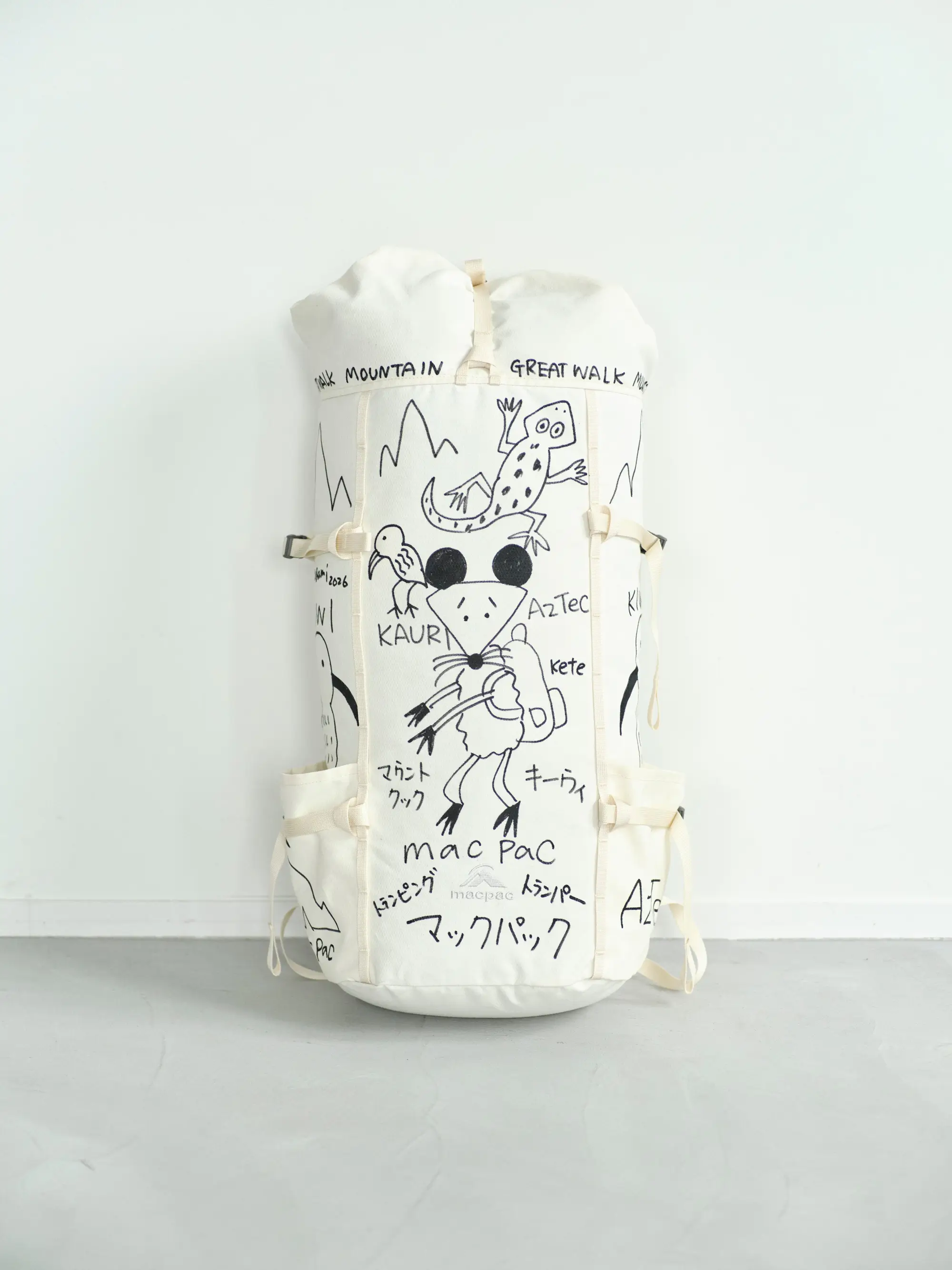 ニュージーランドの自然や、長く歩く文化として親しまれているトランピングを背景に、バックパックを作品として展開している。