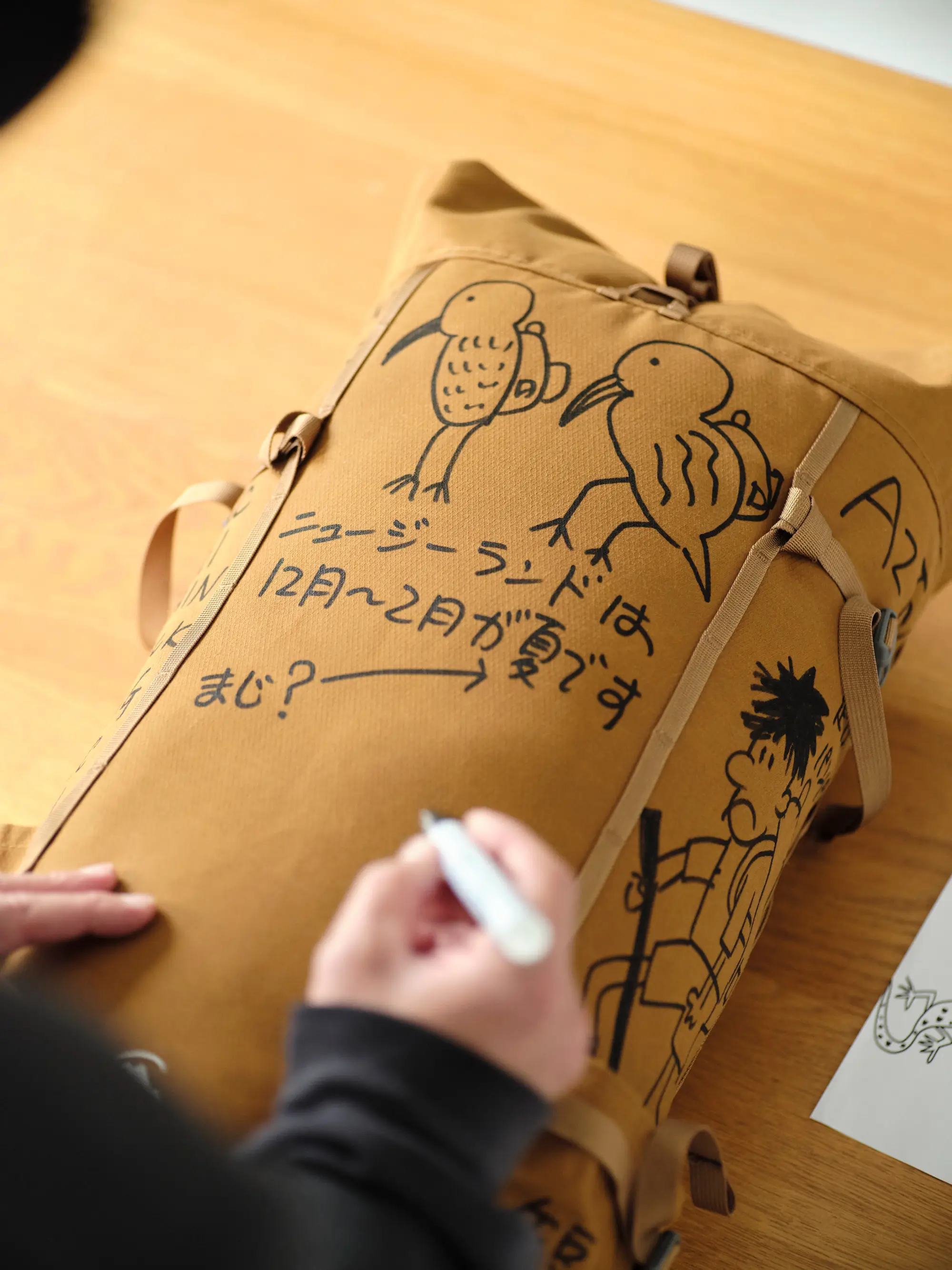 また、バックパックに描くという行為そのものも、あらかじめ整えられたものではなく、使い手の感覚で自由に加えられていく表現として捉えられている。